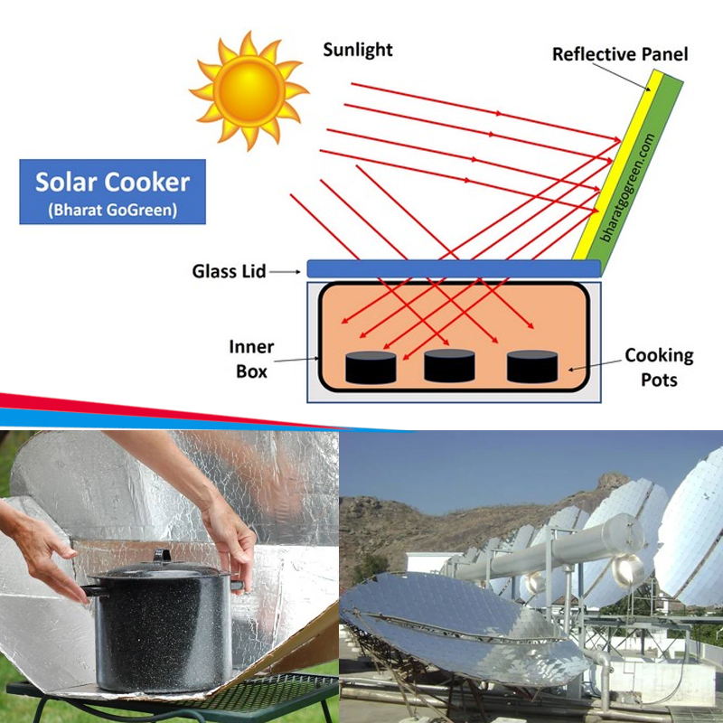Solar cooking systems are an eco-friendly and efficient way to prepare food using sunlight. Solar cookers use reflective surfaces (like mirrors or aluminum foil) to concentrate sunlight onto a cooking vessel. The heat generated cooks the food inside. Types of Solar Cookers: Box Cookers: These have an insulated box with a glass or plastic lid. Sunlight enters through the lid and heats the interior. Parabolic Cookers: Shaped like a satellite dish, they focus sunlight onto a central point for in...